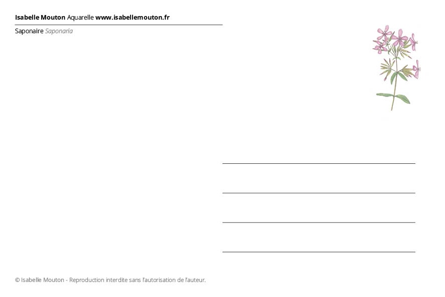 Carte postale botanique la Saponaire - Plante peinte réalisée à l'aquarelle