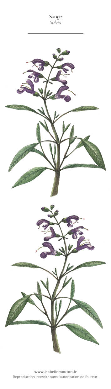 Marque-pages botanique la Sauge - Plante peinte réalisée à l'aquarelle