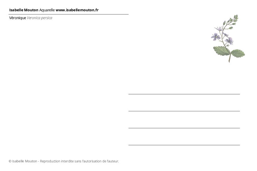 La Véronique - Carte postale botanique - Plante peinte réalisée à l'aquarelle
