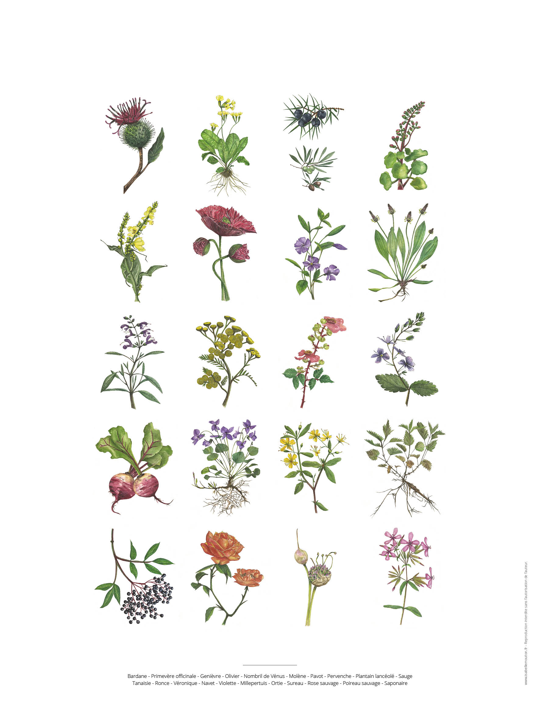 Planche Botanique - Reproduction de tableau peint à l'aquarelle